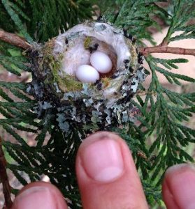 When doing yardwork this year, take a closer look at your shrubs and trees before doing any trimming — there may be tiny hummingbird nests tucked away…